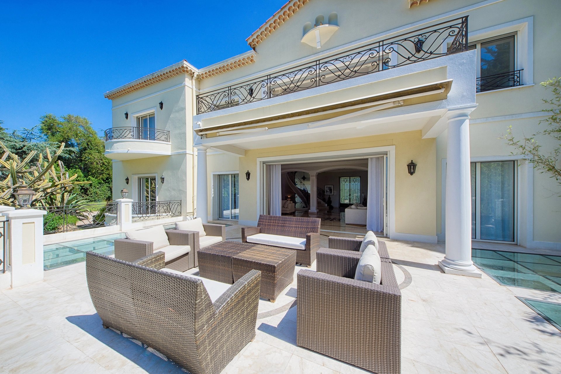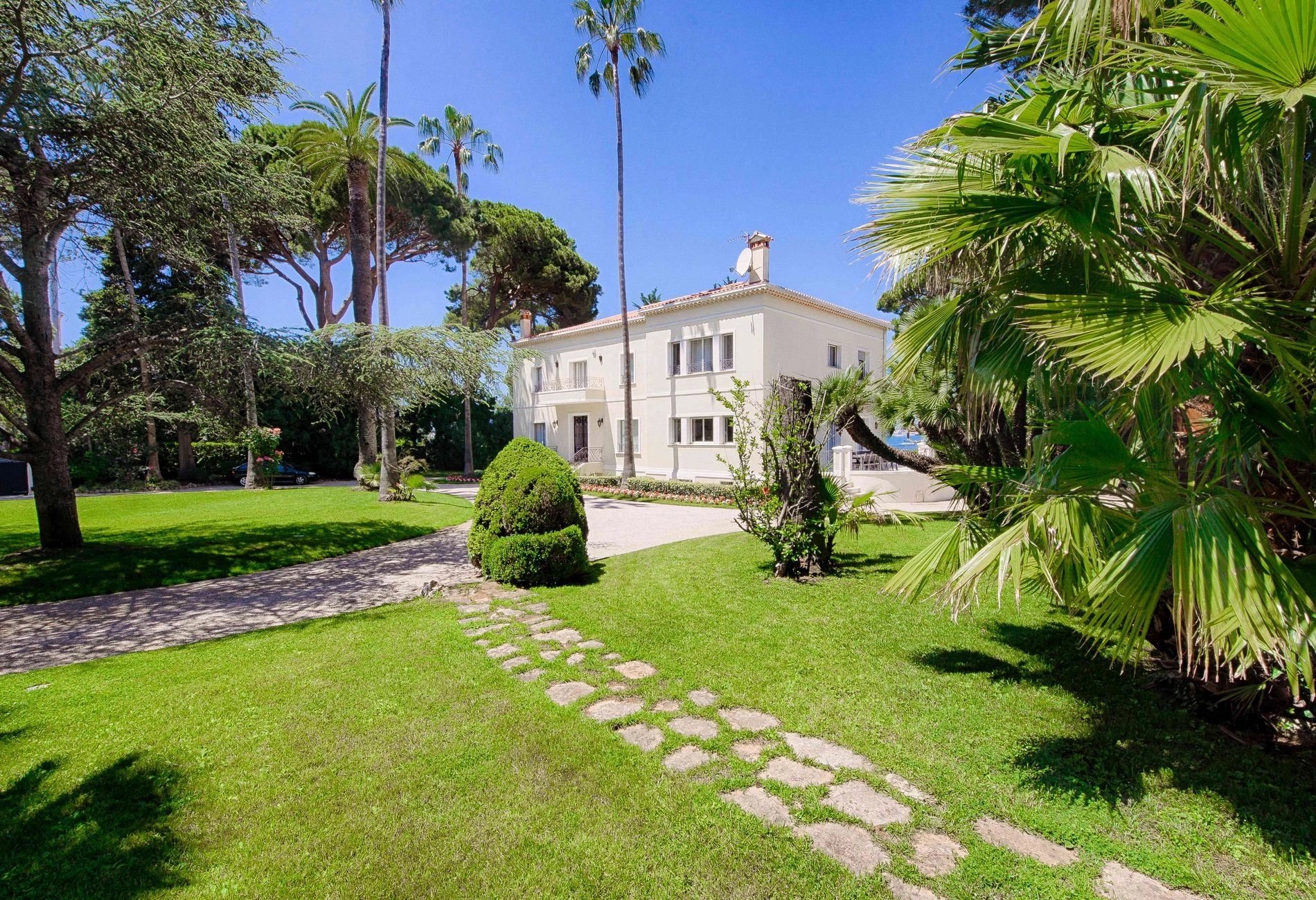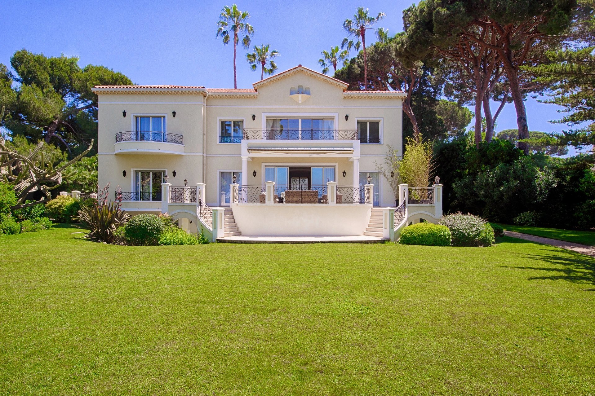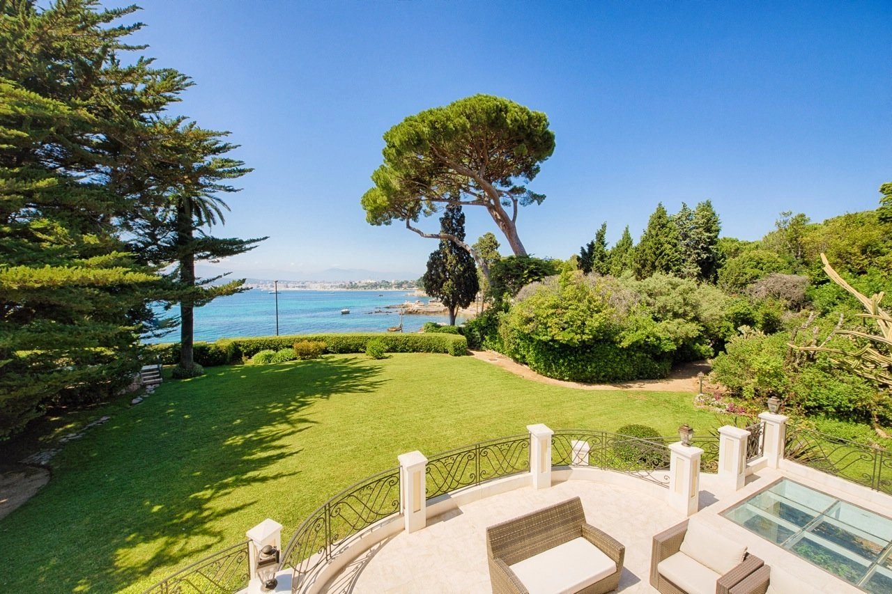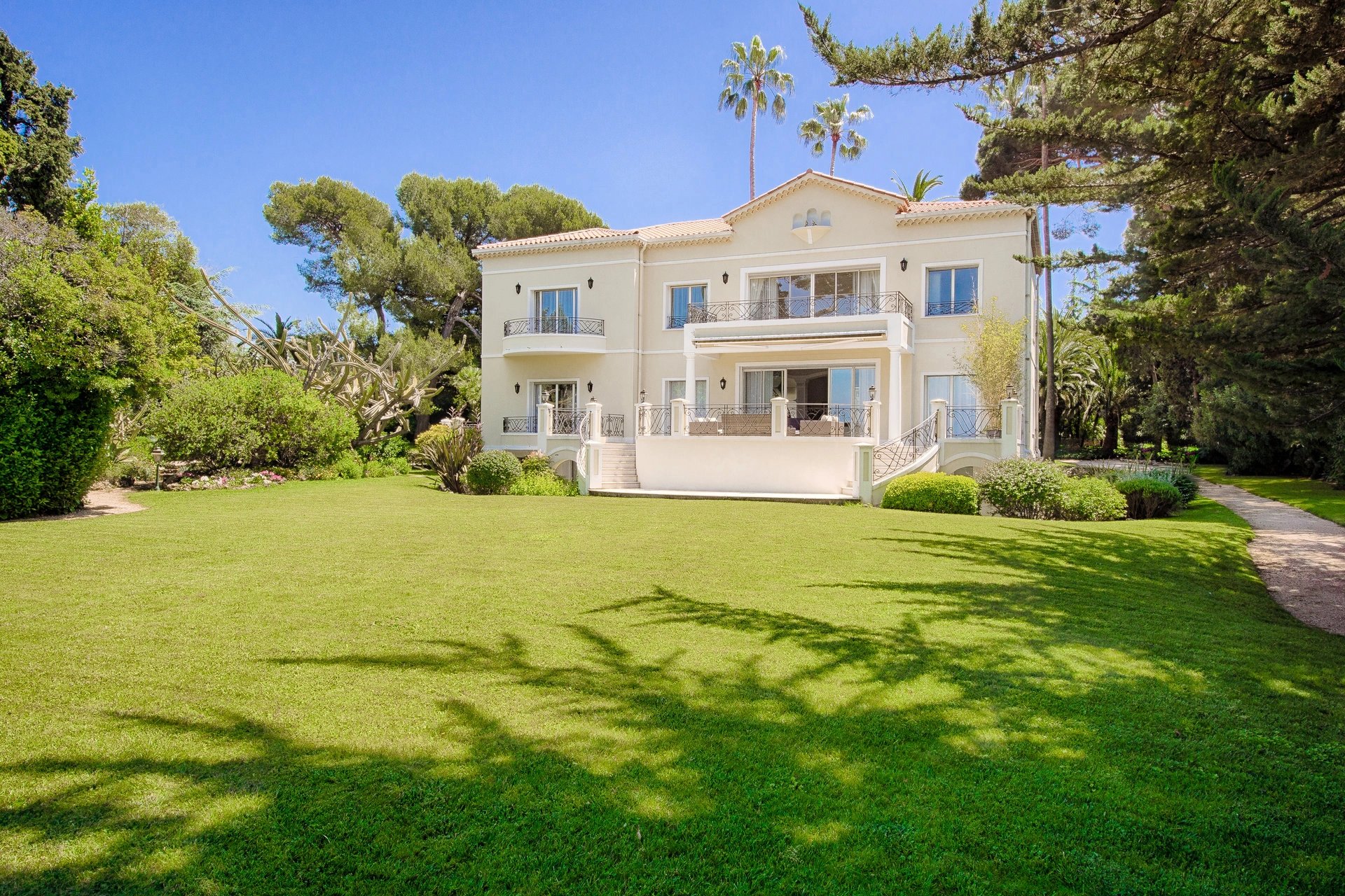CAP D'ANTIBES: Cap d'Antibes sea front. Magnificent Property of 700 sqm situated on the seafront with direct access to the beaches, close to the famous Eden Roc Hotel, surrounded by a flat landscaped park of 9 000 sqm with Mediterranean shrubs and centenary trees. Heated swimming pool with pool house and tennis court. Fully Air conditioned. Spacious reception area with monumental stair case leading onto a large lounge area of around 100 sqm. Terraces facing the sea and gardens. Dinning room with a table for 10 guests. Modern kitchen. 1st floor: Master bedroom with its en suite bathroom, dressing and private terrace. 2 bedrooms with en suite bathrooms. Garden floor: 6 bedrooms with en suite bathrooms. Independent Staff bedroom with private access